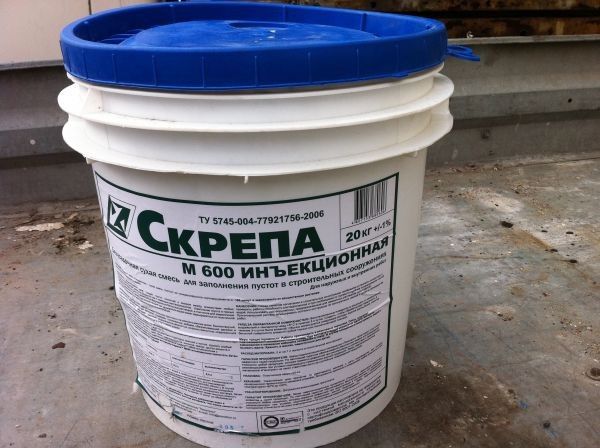 Скрепа™ М600 инъекционная специальная безусадочная сухая смесь для заполнения пустот в строительных сооружениях Скрепа™ М600 инъекционная – сухая смесь; состоит из тонкодисперсного портландцемента и запатентованных химических добавок. Назначение Инъецирование швов, трещин, пустот, полостей и зазоров (размером более 0,4 мм) между элементами любых строительных конструкций с помощью растворонасоса. Укрепление грунта в горных выработках. Как вяжущее для получения литых безусадочных бетонных растворов, в том числе для закрепления анкеров. В зависимости от применения консистенция при затворении водой может варьироваться от пластичной до жидкой, применимой для закачивания в полости конструкций. Особенности • быстро схватывается и имеет большую прочность на сжатие в ранние сроки; • высокотекучий, пластичный и удобоукладываемый материал; • содержит полимерные добавки, обеспечивающие адгезию и повышенную прочность; • обладает высокой водонепроницаемостью, морозостойкостью, коррозионной стойкостью, износостойкостью, долговечностью и отсутствием усадки.